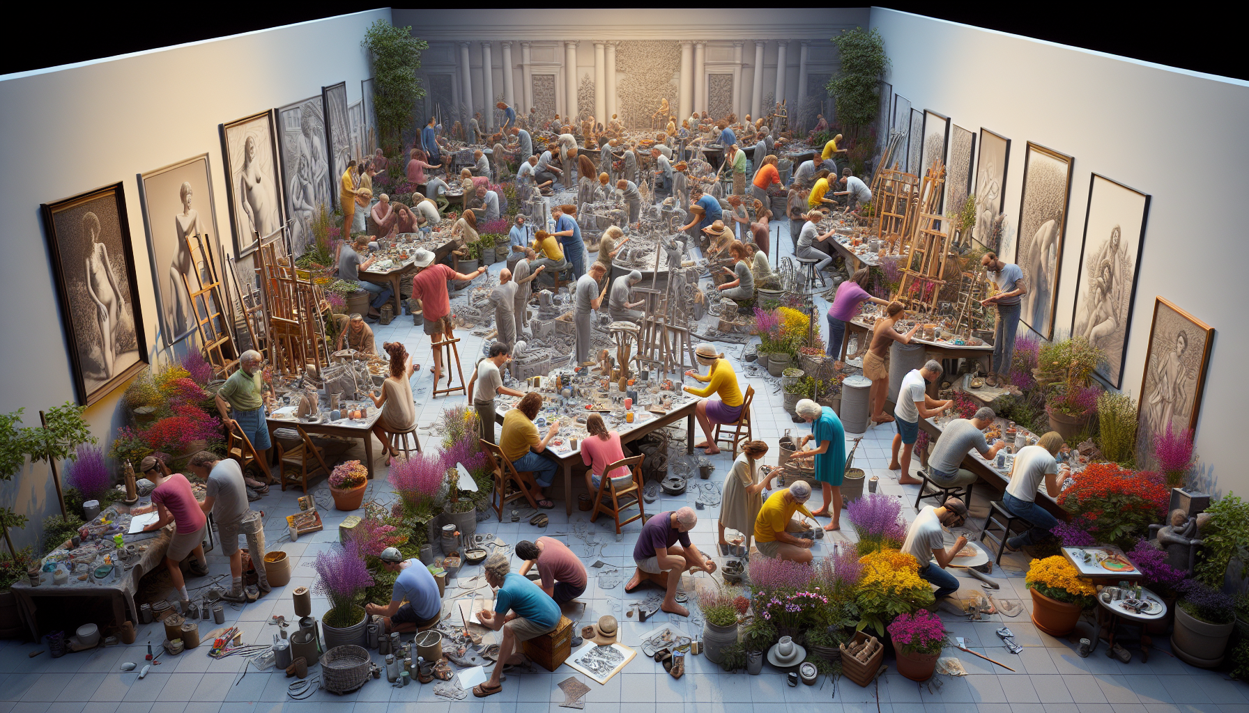 Les ateliers collectifs représentent un format classique et pourtant toujours dynamique pour s’impliquer dans un processus artistique. Qu’il s’agisse d’ateliers de sculpture, de peinture, de photographie ou d’arts textiles, ces espaces permettent de partager des techniques tout en co-créant une œuvre commune.
